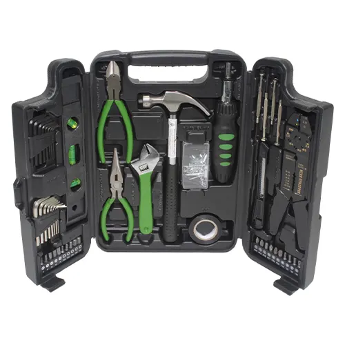 | Contém | Chave Crescente » 6″ Sextavadas – » 1.5, a 6 mm » 1/16″, a 1/4″ Parafusos – Precisão – Bits – » 25 mm Chave Alicate Corte Lateral» 6″ Pontas » 6″ Terminais » 8″ Martelo Carpinteiro » 8 oz X-acto Nível » 9″ Kits Aperto Fita PVC |